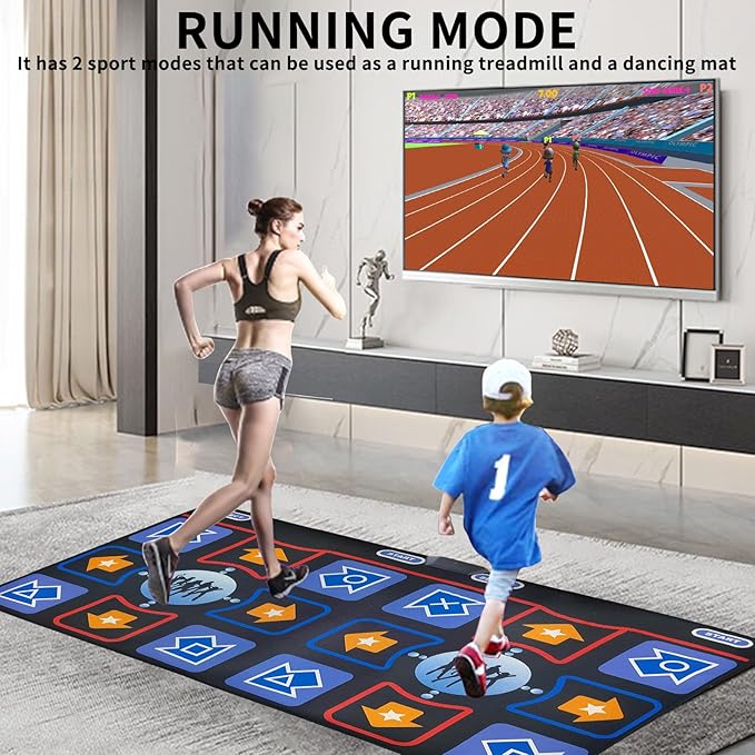 - 【Dance Pad Games and Joy Stick Games】The Dance Mat game console also includes Dance Pad games and Joy Stick games , total 30+ puzzle sports games,such as 100m Race,Whack Mole,Table Tennis,Fruit Silcing,Red Ball etc.These games can improve children's coordination and promote mental and physical development.Adults can also exercise and dance at home to promote blood circulation. Transform your home into a playground on a family game night, a rainy weekend or a get-together with friends.