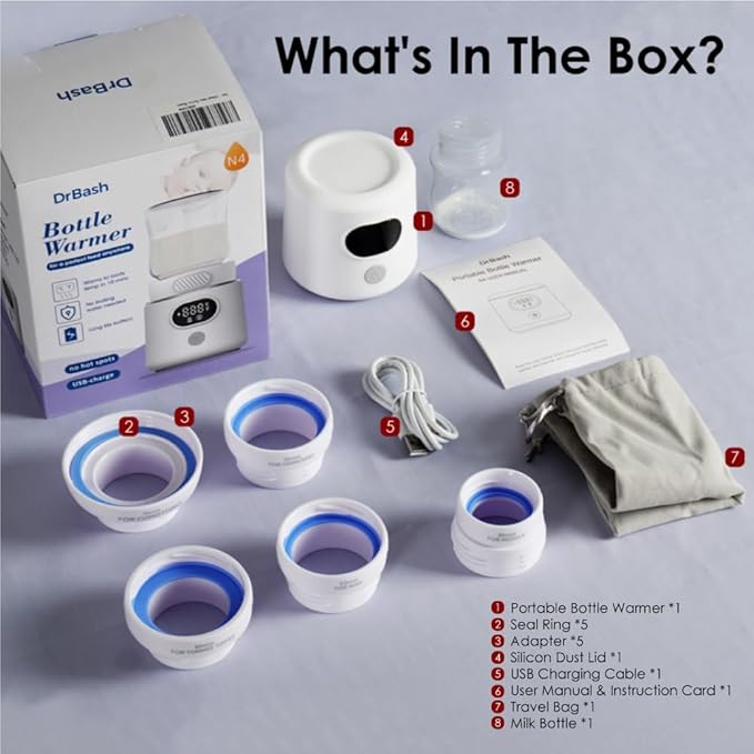 DrBash Portable Bottle Warmer for Travel, Leak-Proof Travel Baby Bottle Warmer with Fast Heating for Breastmilk, Safety Material Baby Bottle Warmer for Dr. Brown, Medela, Tommee Tippee, ComoTomo,