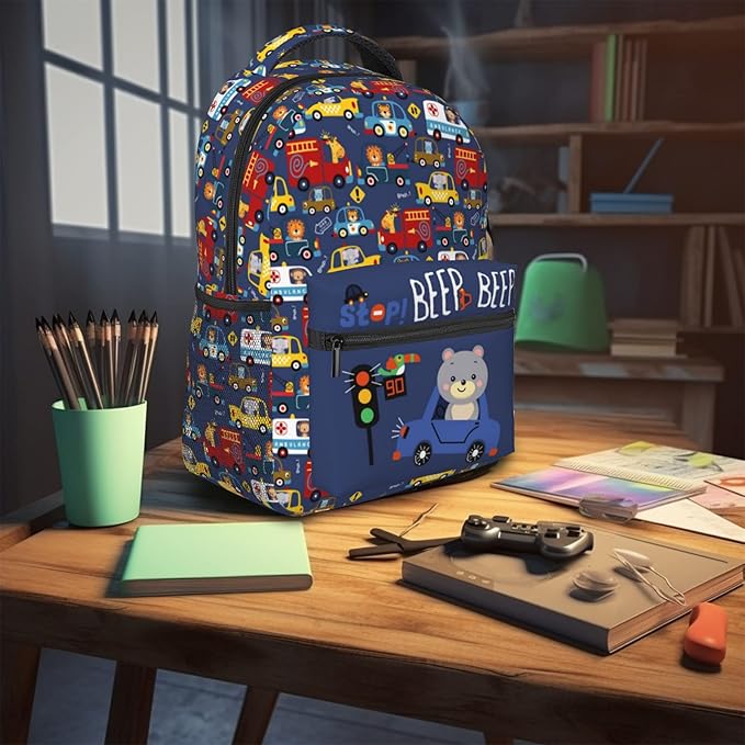 Cartoon Car Animal Backpack For Kids School Boys Girls, Bear & Traffic Light Design, Lightweight Waterproof Ergonomic Backpack For Age 3-5 5-7 7-9 9-12 School Book Bag Daypack Outdoor Play