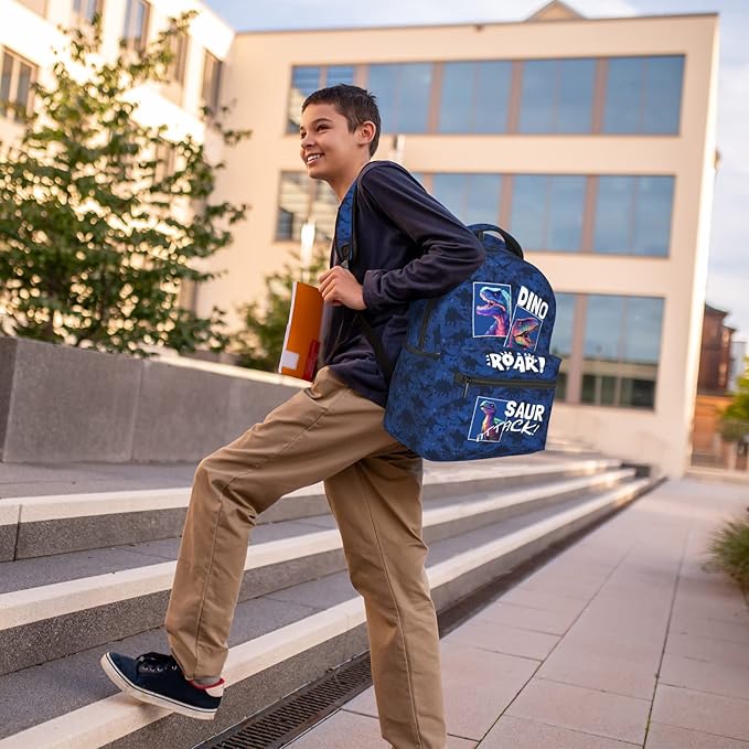 Dinosaur Backpack for Kids Boys Girls, ROAR! DINO SAUR ATTACK! Cartoon Dinosaur Pattern School Bag, Lightweight Ergonomic Durable Bookbag for Age 5-12, Ideal for School Outdoor Travel Daypack