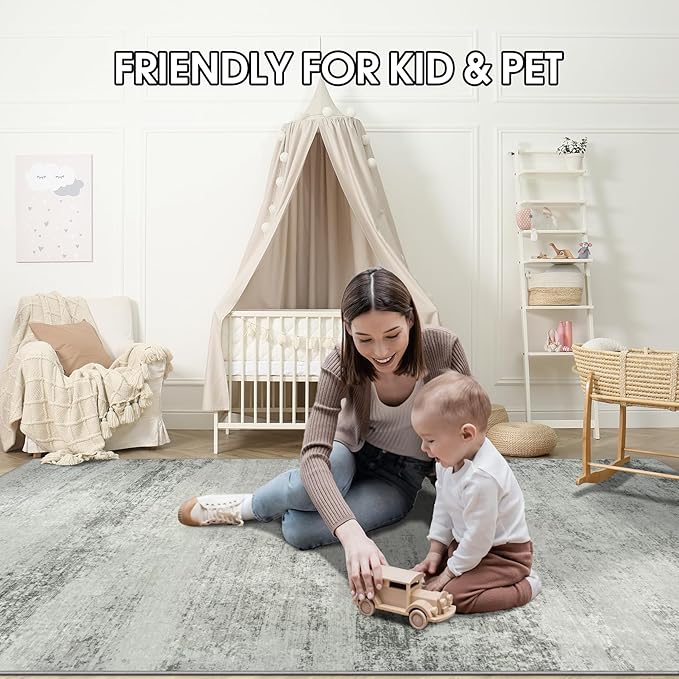 Area Rugs 8x10 Living Room Rugs: Large Modern Abstract Washable Rug with Non-Slip Backing, Thin Carpet for Dining Room Table Bedroom Nursery Indoor Home Office-Gray