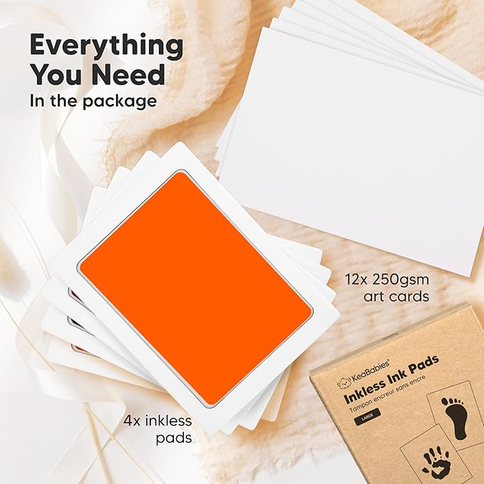 - 12 x 250GSM Art Cards - Your little one is perfect; so are their hand and footprint. Use the additional art cards to stamp multiple hand, foot or paw print. Choose the best artwork for your desired displays. Refer to our step-by-step instruction manual on how you can achieve the best results.