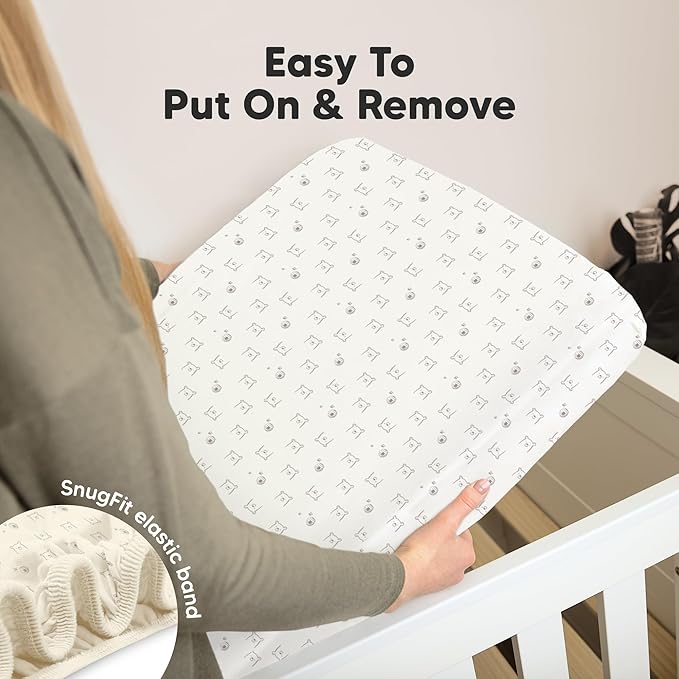 - Easy To Put On - Our baby sheets for crib use SnugFit Tech, a smart fabric knit that stretches effortlessly for quick fitting and removal of the toddler bed sheets. No more struggling with rigid fabric!