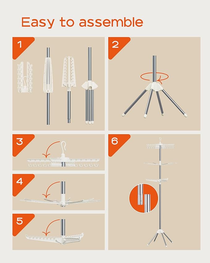 - [Easy to assemble and carry] This drying rack can be installed in just four steps and can be completed within three minutes. The easy to disassemble and assemble design makes it possible for you to carry it with you when you need to dry your clothes on a camping trip.