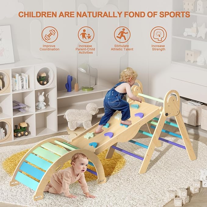 - 🔰【Safe Certification】Baby Wooden Indoor Clambing Toys are made of FSC-certified wood to ensure safety and environmental sustainability. Our toddler climbing toys meet ASTM F963-17 and CPSIA standards. Children's safe play is our top priority.
