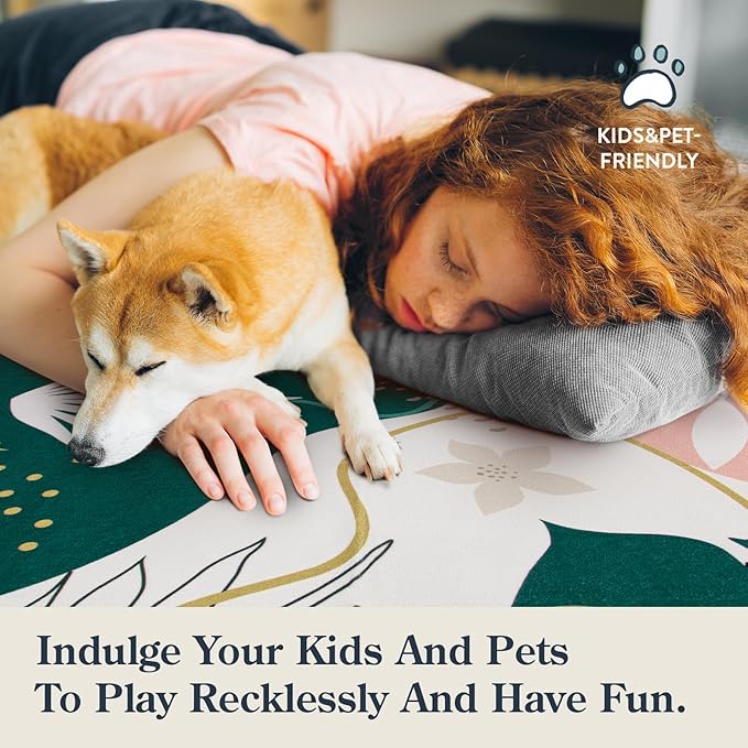 Lahome Washable Rug 5x7 - Rugs for Living Room 5x7 Non-Slip Ultra-Thin Carpet for Bedroom Cute Soft Kids Nursery Rug, Boho Botanical Print Indoor Floor Rug for Entryway Office (5'x7',Green/Pink)