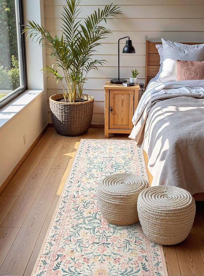 Wonnitar Floral Washable Runner Rug, 2'6"x8' Runners for Hallways Pink Rugs for Entryway Bedroom, Boho Non Slip Soft 8ft Long Carpet for Kitchen Bathroom Laundry