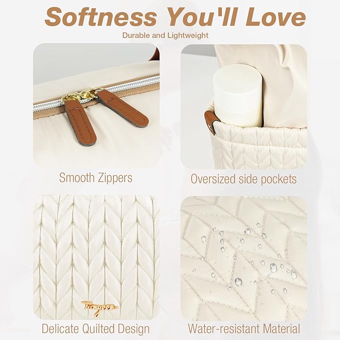 - Soft Materials:Tonyeee diaper bag with 3D herringbone nylon quilting,achieve a perfect blend of practicality and fashion. While studded feet in the bottom keep the bag clean and off the ground