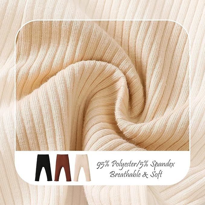 - Toddler Ribbed Leggings: toddler girl leggings is made of 95% polyester and 5% spandex, pants for toddler girls are friendly to skin, soft comfortable & breathable, slightly stretch to make toddler baby girls more flexible activities, toddler girl pants great for winter, fall, autumn