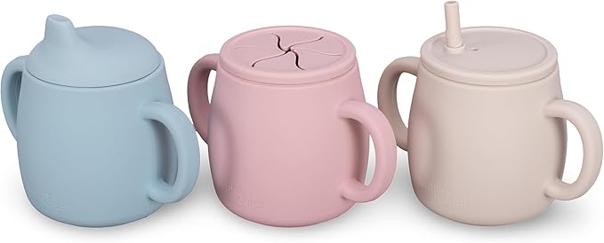 - 4 WAYS TO USE: Each lid offers a unique function, converting it from either sippy cup, straw cup, open cup or snack cup. The soft sippy spout and straw option promotes controlled sipping, helping them develop the coordination needed to drink independently. As your baby grows and becomes more confident, you can remove the lid to use the cup as an open drinking vessel. With the snack lid, you can transform the sippy cup into a handy container for dry snacks like crackers, cereal, or cut-up fruit. A mess-free way to keep snacks secure