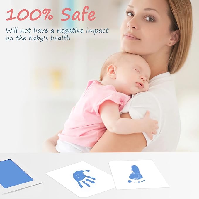 • [Safe Ink Pad]:This clean touch ink pad will not leave ink residue on baby foot. The baby footprint kit is 100% safe for your baby hands feet. New parents can safely use this baby handprint kit to print the baby handprint and footprint ,leave personalized newborn keepsake.
