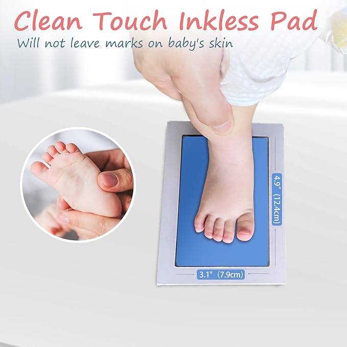 - [Safe Ink Pad]:This clean touch ink pad will not leave ink residue on baby foot. The baby footprint kit is 100% safe for your baby hands feet. New parents can safely use this baby handprint kit to print the baby handprint and footprint ,leave personalized newborn keepsake.