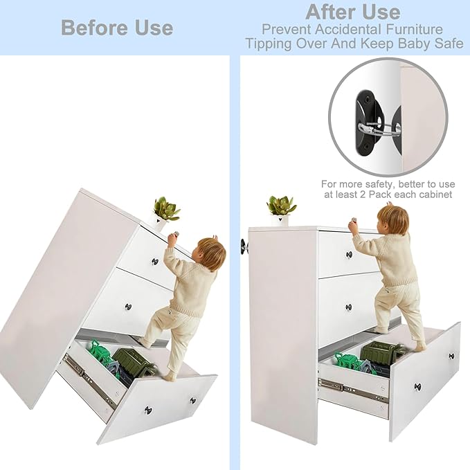 - 【BABY SAFETY】: When toddlers climb on furniture, there is a risk of tipping accidents. The good news is that with the Furniture Anchors, you can help keep your furniture secure and your child safe. Even under pressures of up to 420 pounds, this furniture anchors for baby proofing keeps your furniture upright and secure.