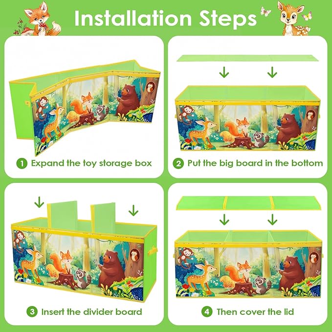 - 【Convenient Divider Design】 Our cube toy box is designed with a velcro flip lid, which helps to prevent dust from getting in, and there are two removable dividers in the center, which can be turned into different storage spaces, and large toys can be put, making it easy to reach for items.