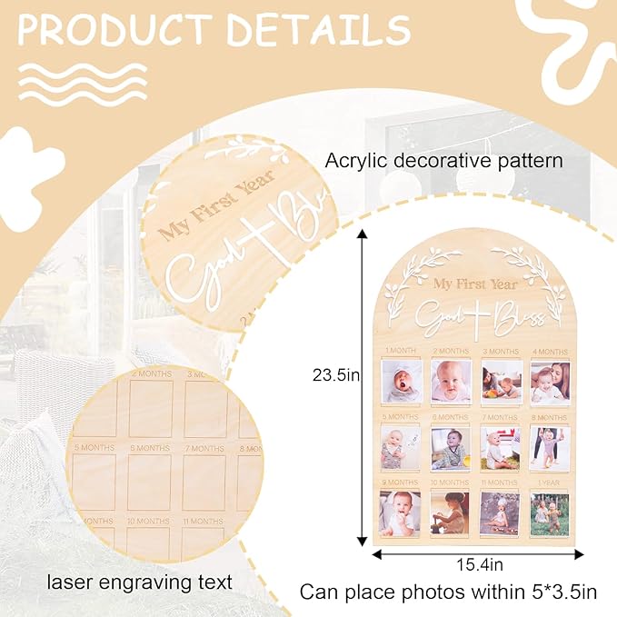 - GOD BLESS WOODEN PHOTO BOARD: With this stylish first year monthly photo display board, we can see your baby's adorable appearance at different stages and add more warmth and joy to your celebration