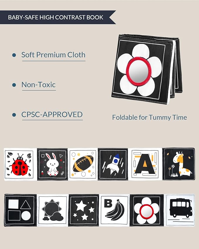 - Perfect Baby Gifts & Registry Must-Have: Whether you're looking for a baby shower gift, a baby birthday gift, or adding to a baby registry, this Black & White Baby Book Toy is a thoughtful and practical choice. It combines educational value with a design that parents and babies will love, making it a perfect addition to any baby registry search.