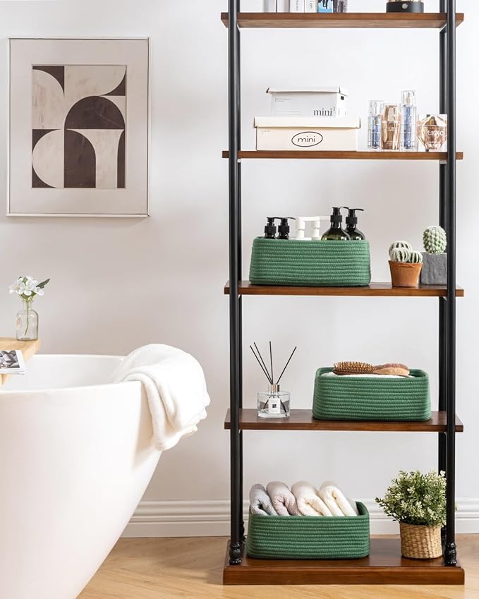 - [ Elegantly Designed to Match Any Décor ] Our small rope basket creates a minimalist appearance, and it adds a touch of warmth and texture to any room. The classic solid color design ensures seamless integration with your existing aesthetics, complementing any decoration. Perfect as decorative storage baskets for shelves, cabinets, and any open display space, making them a stylish and practical addition to any decor, enhancing the overall aesthetics of your room