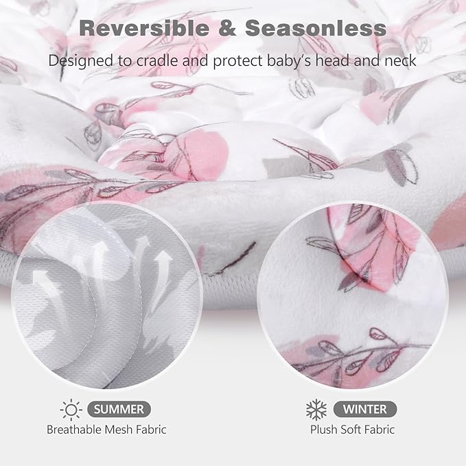 - 【Reversible & All-Season Design】The infant car seat insert is reversible: plush fleece for winter & cooling mesh for summer. Dual-pattern designs keep your car seat head support stylish and functional year-round!