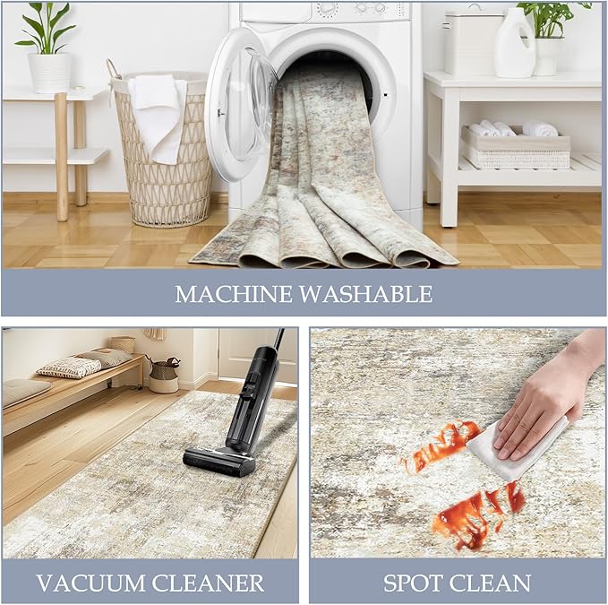 - Tides Series – Effortless style that flows with your life.This modern machine-washable non-slip rug features reinforced edges and a low-pile design that resists dirt. Its water-repellent surface makes spills easy to clean - liquids bead up for quick wiping. Simply machine wash in cold water (no bleach) to refresh. The non-slip backing keeps it securely in place. A perfect blend of function and contemporary design for active homes.