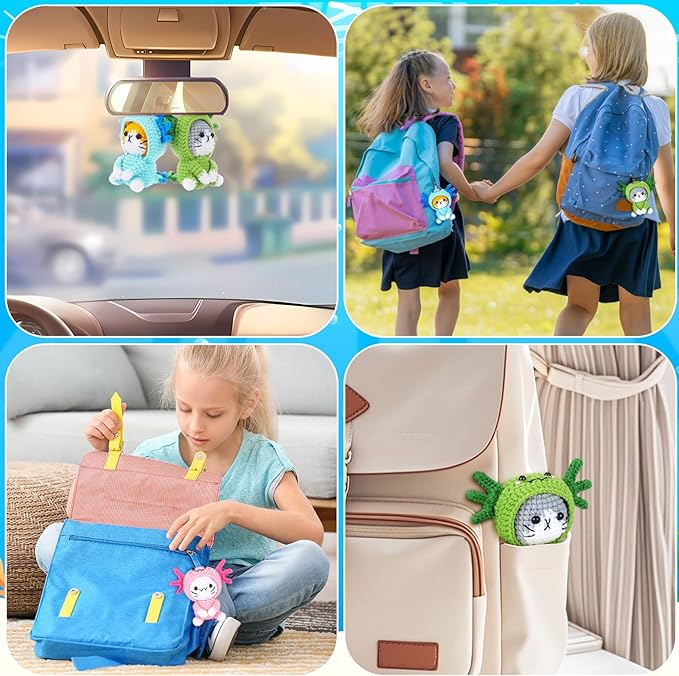 - CROCHET ANIMAL KIT: The crochet starter kit could crochet 3 cute cats dressed as axolotl, designed for animal lovers and loved by many. It will gently heal your heart as you crochet. The warm finished product can be used as a decoration and placed in the study room, living room, bedroom lamp, etc