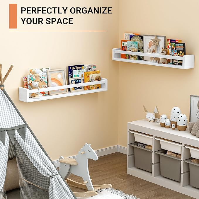 - [Ample Storage Space] - Measuring 31.8 inches, these nursery shelves offer ample room for organizing children's books, toys, photos, and other small items. They encourage a love for reading while keeping spaces tidy. With 0.6” thicken panels, each bookshelf can hold up to 30 LBS