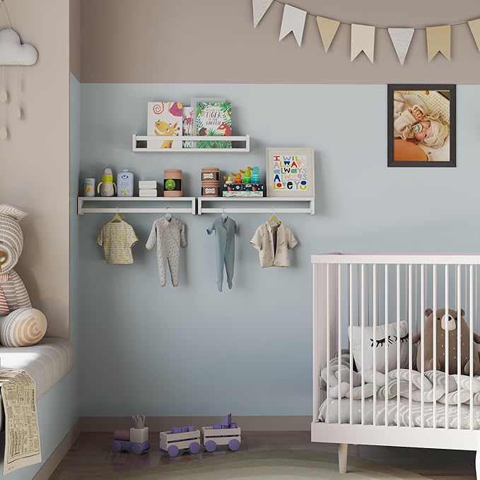 - [Experience Effortless Mounting] - Our nursery floating shelf comes with detailed step-by-step instructions and a complete hardware kit for easy installation. Measured size of 4” D x 24” W x 3.5” H, ideal size for nursery room.