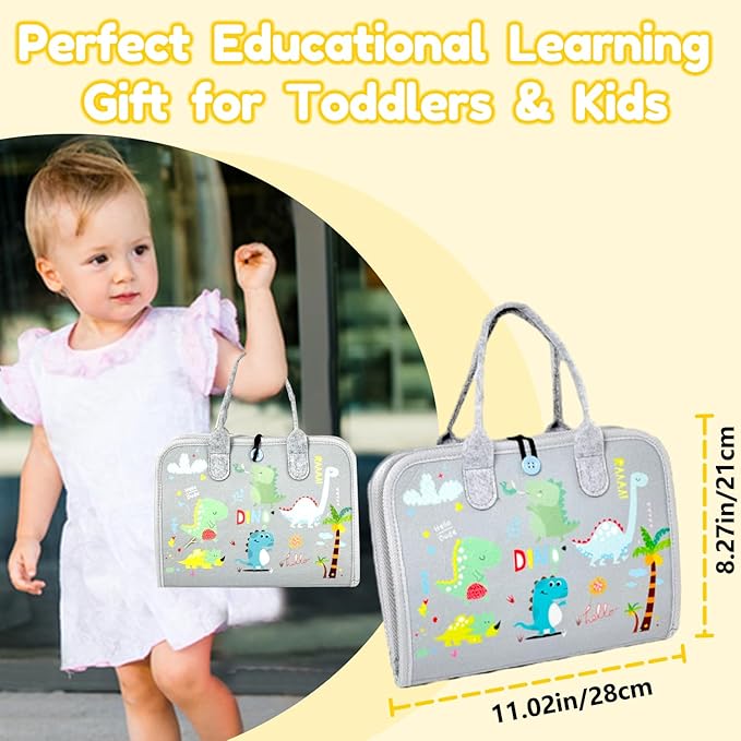 • Portable and Travel-Ready: Take learning on the go! Our compact, lightweight toddler busy book (11x8.2in) features a convenient handle, making it easy for little hands to carry. It fits easily into diaper bags or backpacks, making it the perfect travel toys for toddlers 1-3. Whether on a road trip or airplane journey, this toy keeps your child engaged, entertained, and learning-turning travel time into a fun, educational adventure