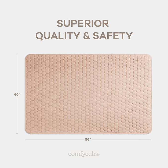 Comfy Cubs Rectangle Kids Play Mat - Large 60 x 96 inches Soft Quilted Baby Floor Mat with Non-Slip Bottom - Plush Design for Toddlers' Playtime and Relaxation - Comfortable and Durable - Blush
