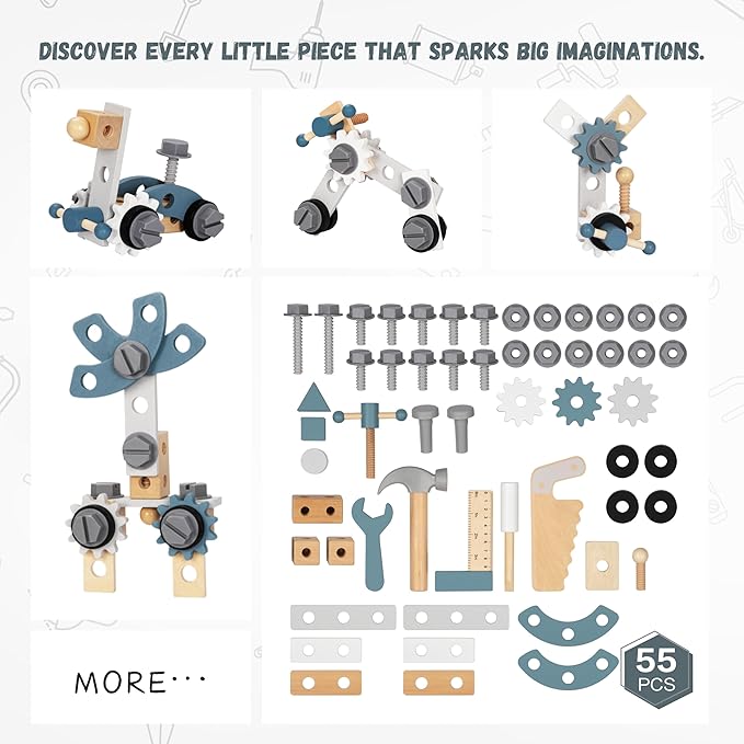 - 2-in-1 Interactive Tool Bench Fun: Boost creativity and motor skills with this wooden walker, featuring realistic tools like hammers, wrenches, and gears. Perfect for toddlers imaginative role-play learning