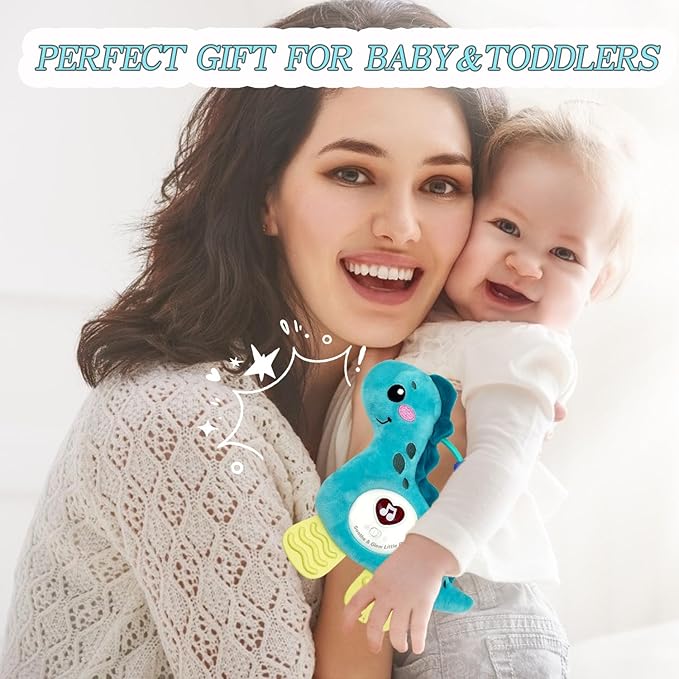 Baby Musical Activity Soft Toys with Sound & Light, Sensory Toys for Infant Developmental with Teether, Rattle and Textures, Soft Plush Toy for Newborn Gift 6 to 12 Months (Blue Dinosaur)