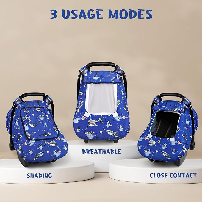 Pea Pod Car Seat Cover Baby, Infant Car Seat Canopy Covers for Newborn with 2 Layers Windows of Breathable Mesh Fabric, Lightweight Polyester/Soft Minky Dot Backing (Ocean)