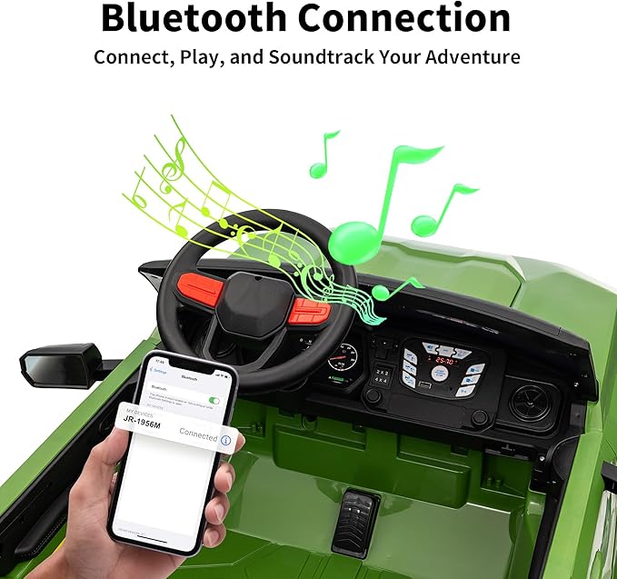 - MUSIC & WIRELESS FUNCTIONALITY: The 24V bigger kids ride on toys includes wireless connection. Allowing kids to play their favorite songs. This kids battery powered electric vehicle are perfect for gift-giving!