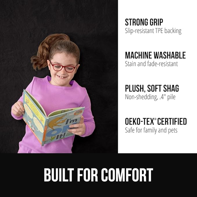 GORILLA GRIP Ultra Soft Washable Area Rug, Stain and Slip Resistant Plush Thick Carpet for Bedroom Living Room, No Shed Floor Rugs, Pet Friendly, Dorm Essentials, Kids Nursery Home Decor, 4x6, Black