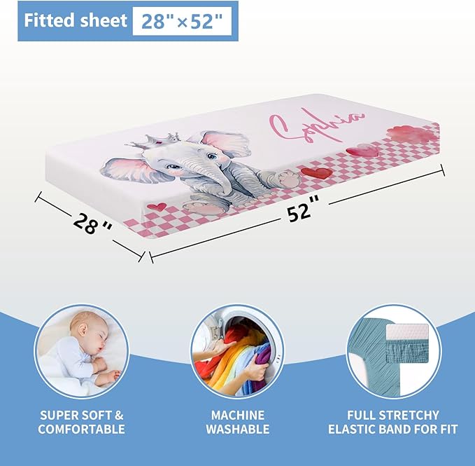 Personalized Baby Crib Set, 5 Pcs Custom with Name, Soft Elephant Crib Bedding, Double Layer Toddler Infant Bedding, New Parents Gifts