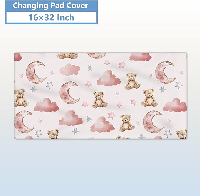 Custom Baby Crib Set, 5 Pcs Personalized Name Pink Bear Theme for Infants Toddlers, Nursery Bedding for Girls, Double Layer Customized Gifts