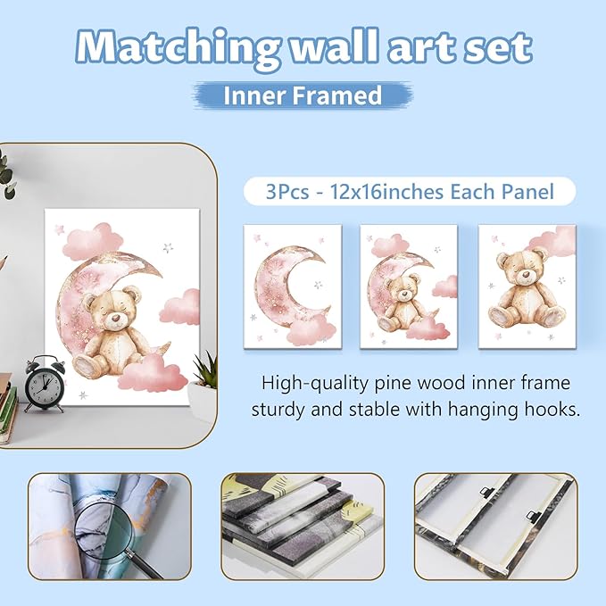 - Matching Set: This baby crib set includes a crib blanket, fitted crib sheet, changing pad cover, baby rug and three wall arts, all designed to add style to your nursery. Each piece is crafted with attention to detail, ensuring durability and long-lasting use.