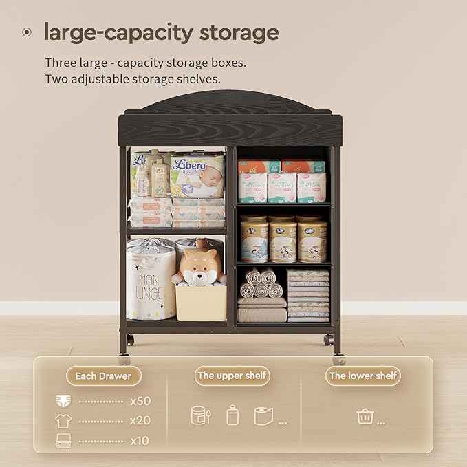 - Large Storage Space:3 removable pull-out drawers and 2 shelves make it easy to store essentials such as diapers, body lotions, and baby clothes.When the baby grows up, it can also be used to display potted plants, books, and other items to decorate the room,the non-woven fabric is breathable and harmless, suitable for baby and teens.