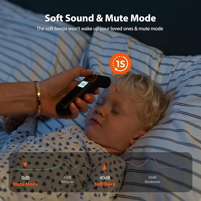 - Quiet & Convenient with One-Touch Control: Features a silent mode for peaceful nighttime use, making it especially useful for babies and children. Quick-access ℃/℉ switching and single-button operation make this device a user-friendly thermometer for home.