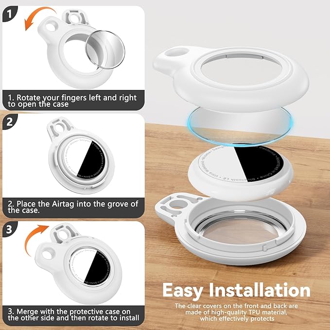 - Easy Installation: No complicated operation is required, and you can fix AirTags in the Holder in a few easy steps;[Tips]: The specific installation steps can be seen in the picture; The protective cover of the Apple Airtags keychain will not affect the touch screen and shield the signal; Whether it is finding lost items or remote tracking, it can be easily achieved