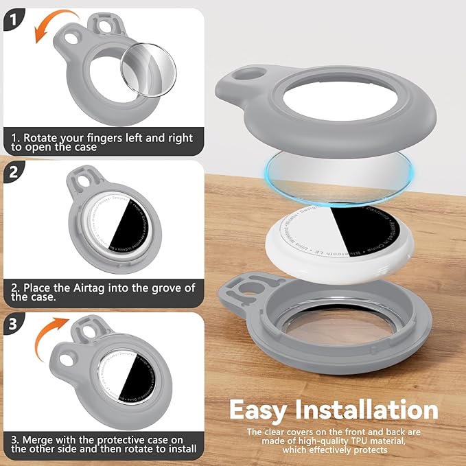 - Easy Installation: No complicated operation is required, and you can fix AirTags in the Holder in a few easy steps;[Tips]: The specific installation steps can be seen in the picture; The protective cover of the Apple Airtags keychain will not affect the touch screen and shield the signal; Whether it is finding lost items or remote tracking, it can be easily achieved