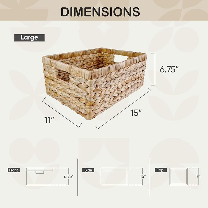 - Complements Various Decor Styles: The natural wicker design of this hyacinth storage basket fits with both modern and rustic interiors. Use it as a decorative basket for storage, in bathroom, in living rooms, or as an empty basket for gifts at any event.