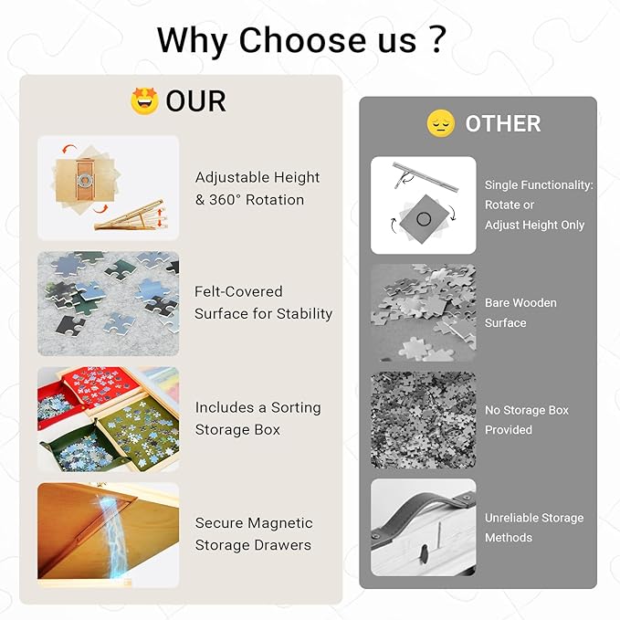 - 🧺 Smooth-Glide Drawers & Bonus Storage: Comes with 4 easy-slide drawers,4 puzzle partition trays, a pet-safe PP shield, puzzle saver stickers, and a built-in handle for easy transport and storage.
