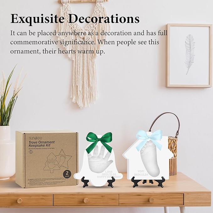 - Record Your Baby's Growth:Create Meaningful memories Don't let newborn exhaustion erase those precious memories.This baby souvenir clay ornament captures their perfect little handprint, footprints, fingers and toes. It's a must for newborns!