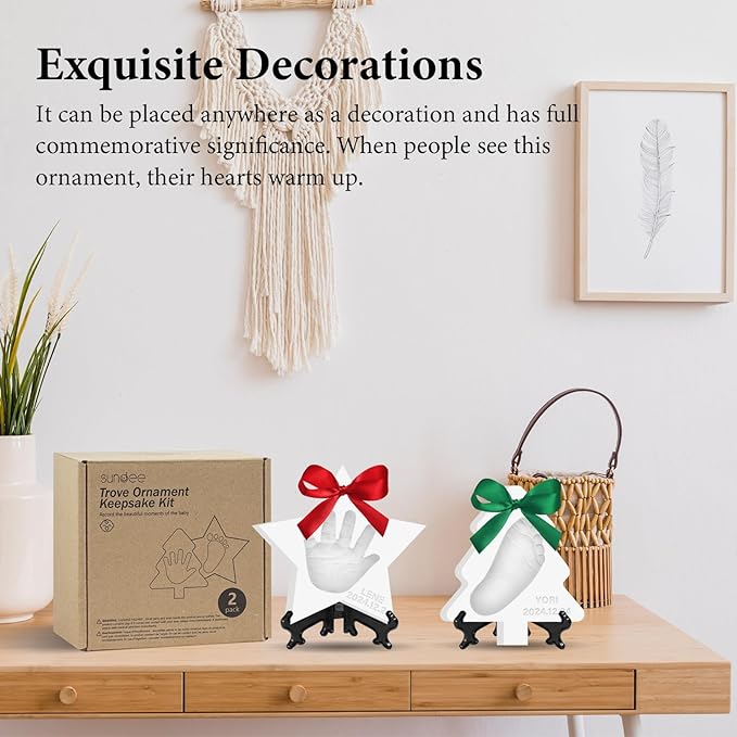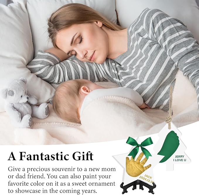 - Record Your Baby's Growth:Create Meaningful memories Don't let newborn exhaustion erase those precious memories.This baby souvenir clay ornament captures their perfect little handprint, footprints, fingers and toes. It's a must for newborns!