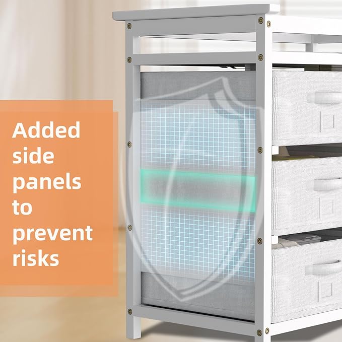 - 2-in-1 Changing Table: This baby changing table dresser contains 3 large and 3 small storage baskets, which can be used as a diaper changing station and a storage dresser. You can change diapers for your baby on the table, while you can also place diapers, baby supplies or other things in the cabinet. The multifunctional design ensures long-term use, making it a valuable addition to your nursery furniture collection.