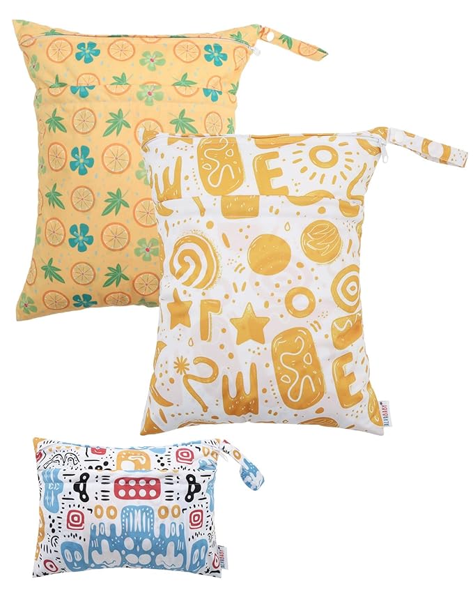 ALVABABY 3 Cloth Diaper Wet Dry Bags Waterproof Reusable with Two Zippered Pockets Travel Beach Pool Daycare Soiled Baby Items Yoga Gym Bag for Swimsuits or Wet Clothes Small medium Large 3L-SML05