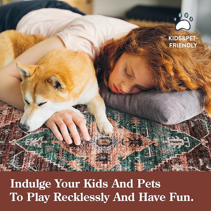 Lahome Area Rugs 5x7 for Living Room - Washable Non-Slip Ultra-Thin Bedroom Carpet, Non-Shedding Oriental Vintage Distressed Carpet Rug for Dining Room Office
