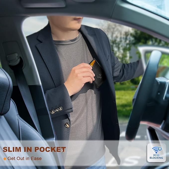 BULLIANT Men Wallet,Money Clip Wallet Slim For Gift Men 9Cards-Metal Credit Card Case in Magnetic Leather Flip