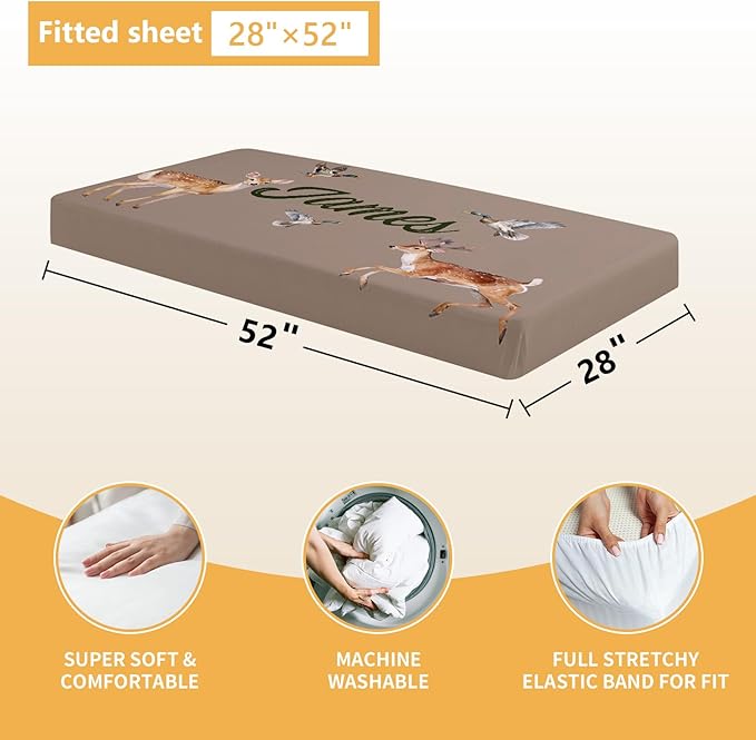 Custom Baby Crib Bedding Set, 5 Pcs Personalized Name Baby Crib Sets for Infant Toddler, Green Woodland Deer Nursery Bedding Set for Boys Girls, Double Layer Baby Bedding Sets Customized Gifts