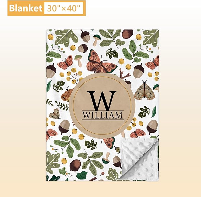 - Complete Set: This customized baby bedding set includes a double layer dotted backing blanket, crib sheet, changing pad cover, baby rug and wall arts, designed to add style and comfort to your nursery. The dotted backing of the double-layer blanket will be adored by your little one.